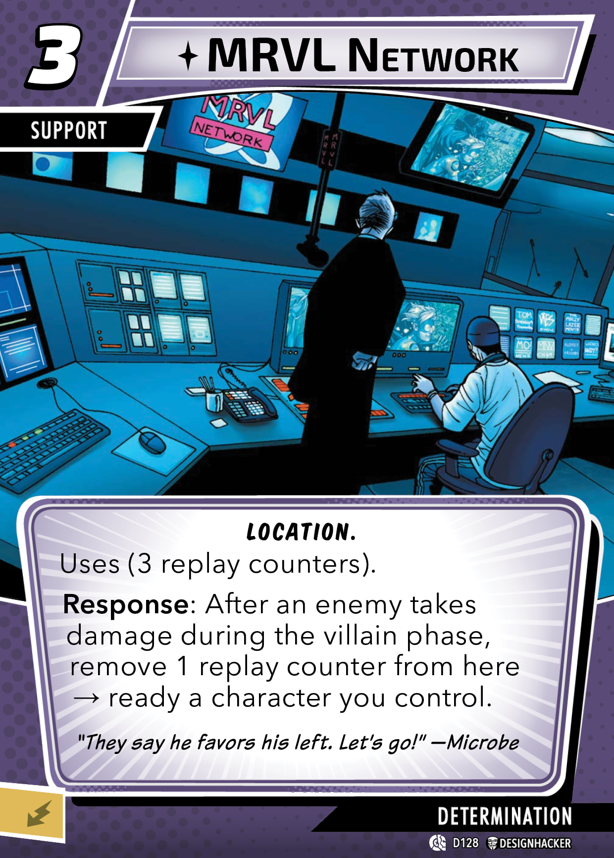 Response: After an enemy takes damage during the villain phase, remove 1 replay counter from here – ready a character you control.
